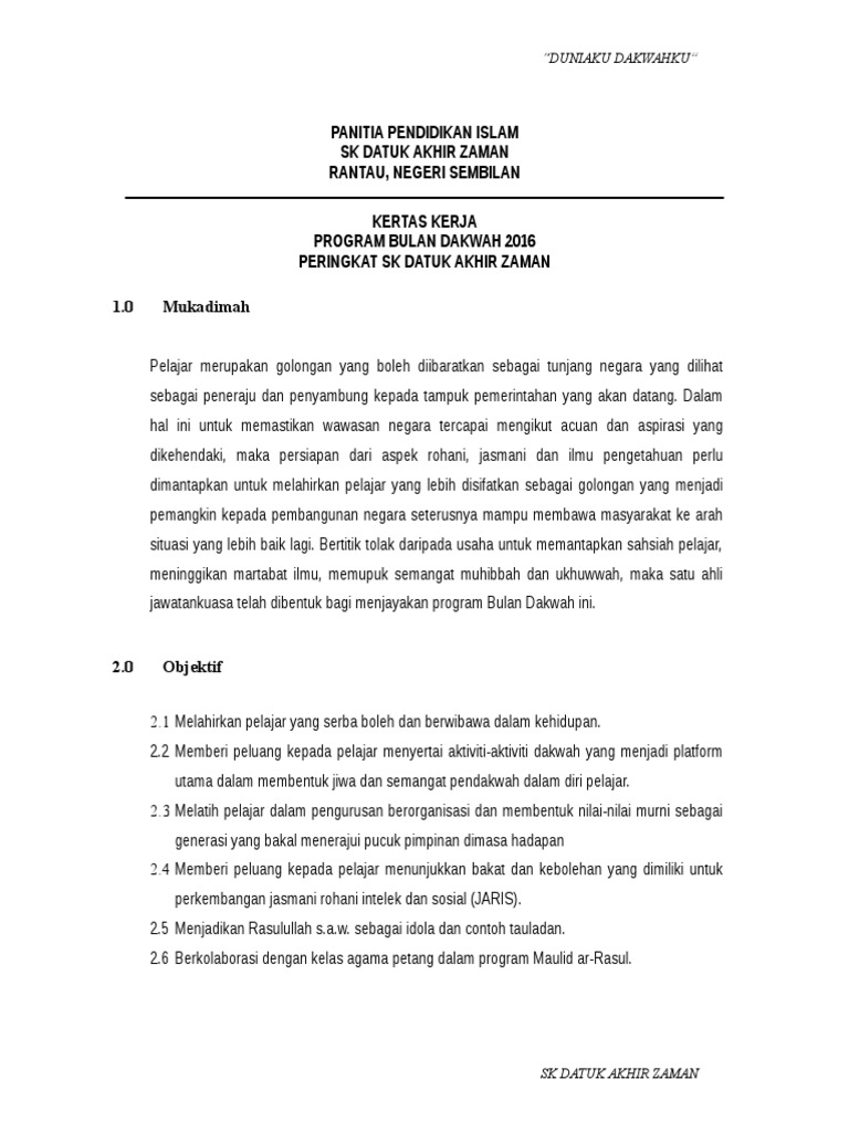 KERTAS KERJA SAMBUTAN BULAN DAKWAH by nur-49 in Types School Work. GERKO_CONTOH KERTAS KERJA AuthorokeD. 19 Julai 2019 Jumaat Program ini melibatkan semua pelajar SMK Bukit Sagu.